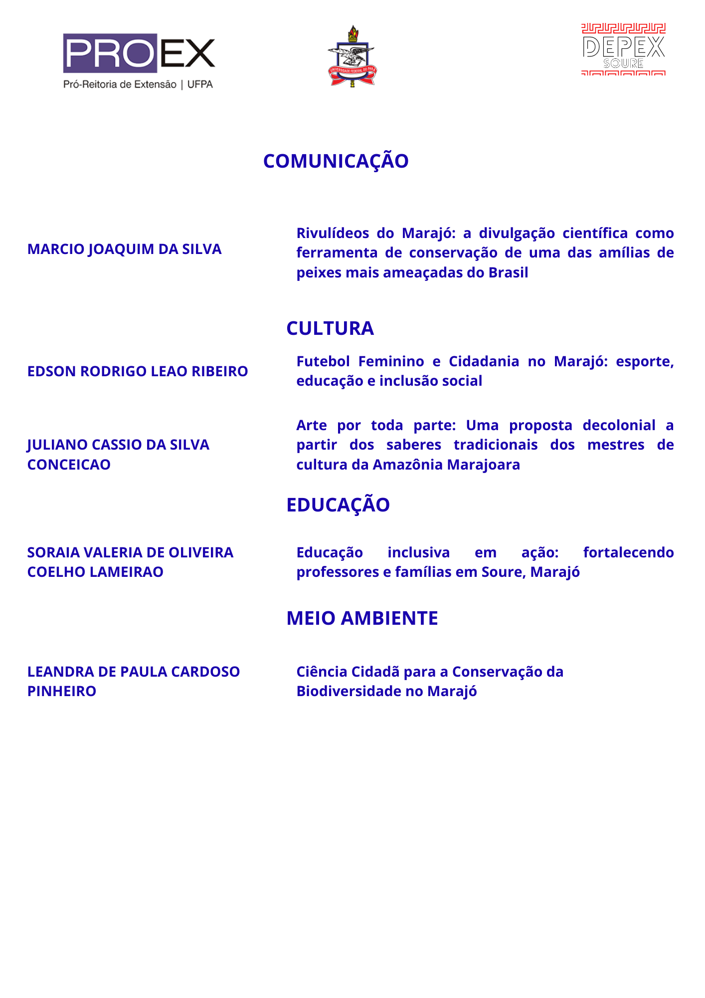 A Pró-Reitoria de Extensão (PROEX), por meio do Programa de Extensão Interdisciplinar Amazônico – PROEXIA Marajó, torna público o Resultado Final da Fase de Análise de Mérito das Propostas submetidas ao Edital PROEXIA Marajó 2025.