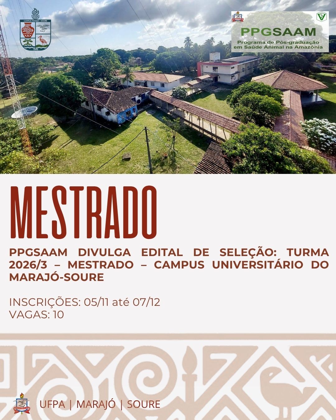 Seleção de Mestrado 2026 – PPGSAAM/UFPA Campus Soure O Programa de Pós-Graduação em Saúde Animal na Amazônia (PPGSAAM) da Universidade Federal do Pará publicou o Edital de...